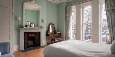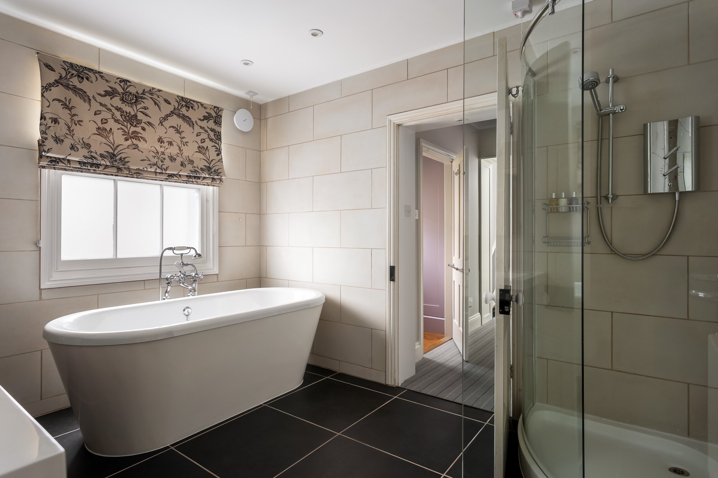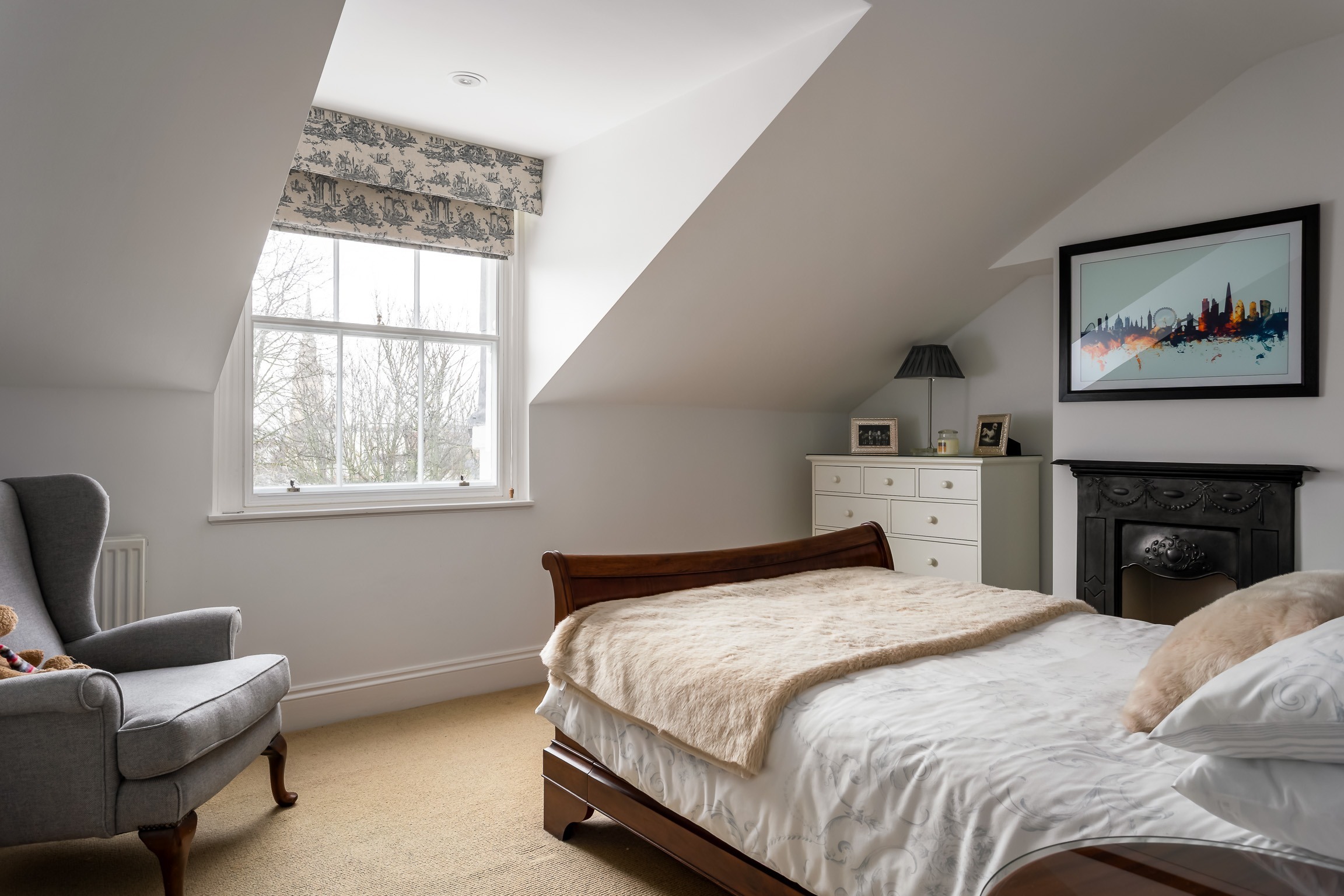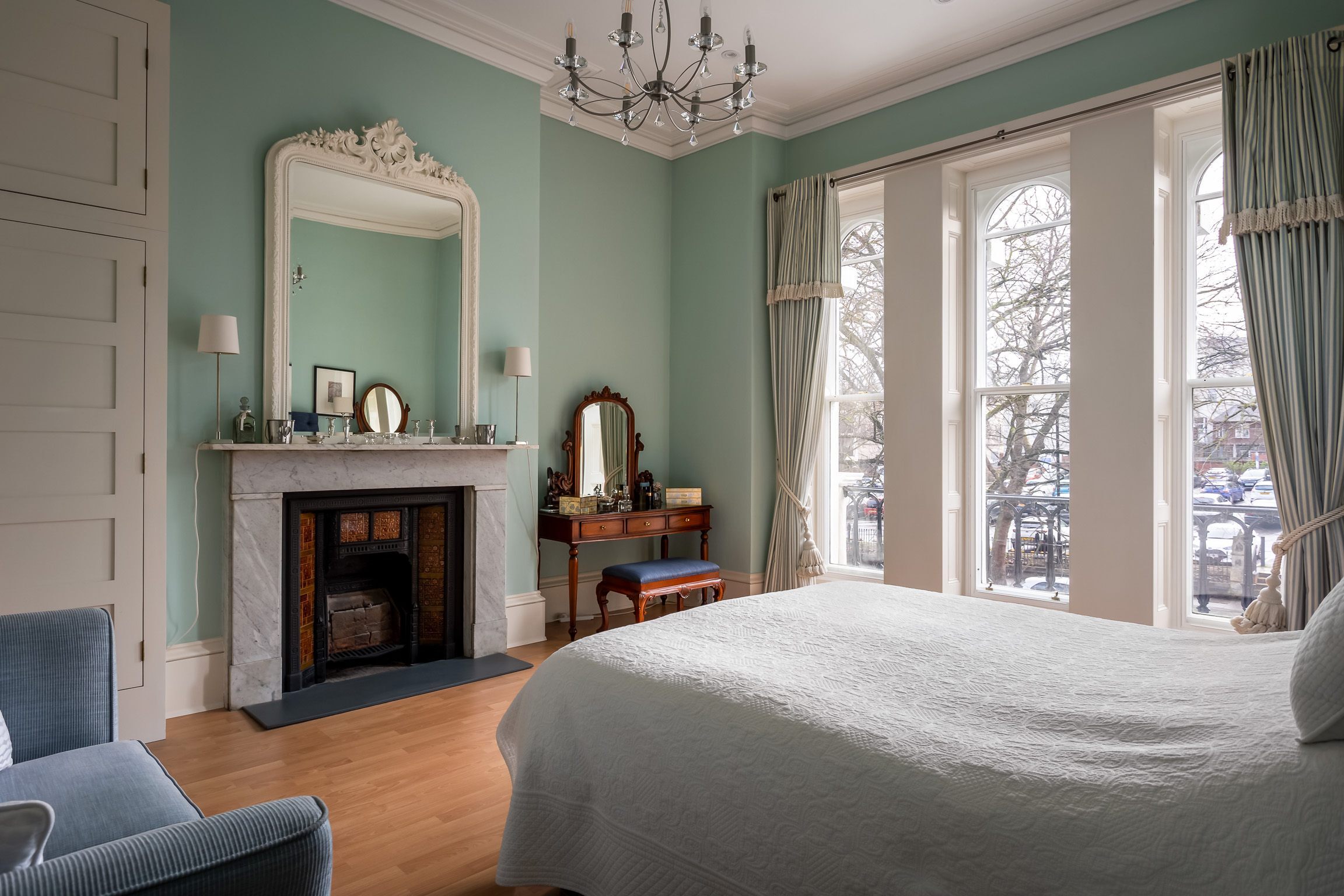 The first floor is dedicated to three well-appointed bedrooms, two of which are notably generous in scale and enhanced by original period fireplaces. This floor is further complemented by a separate W/C and an elegant family bathroom positioned to the rear, benefiting from additional mezzanine storage.