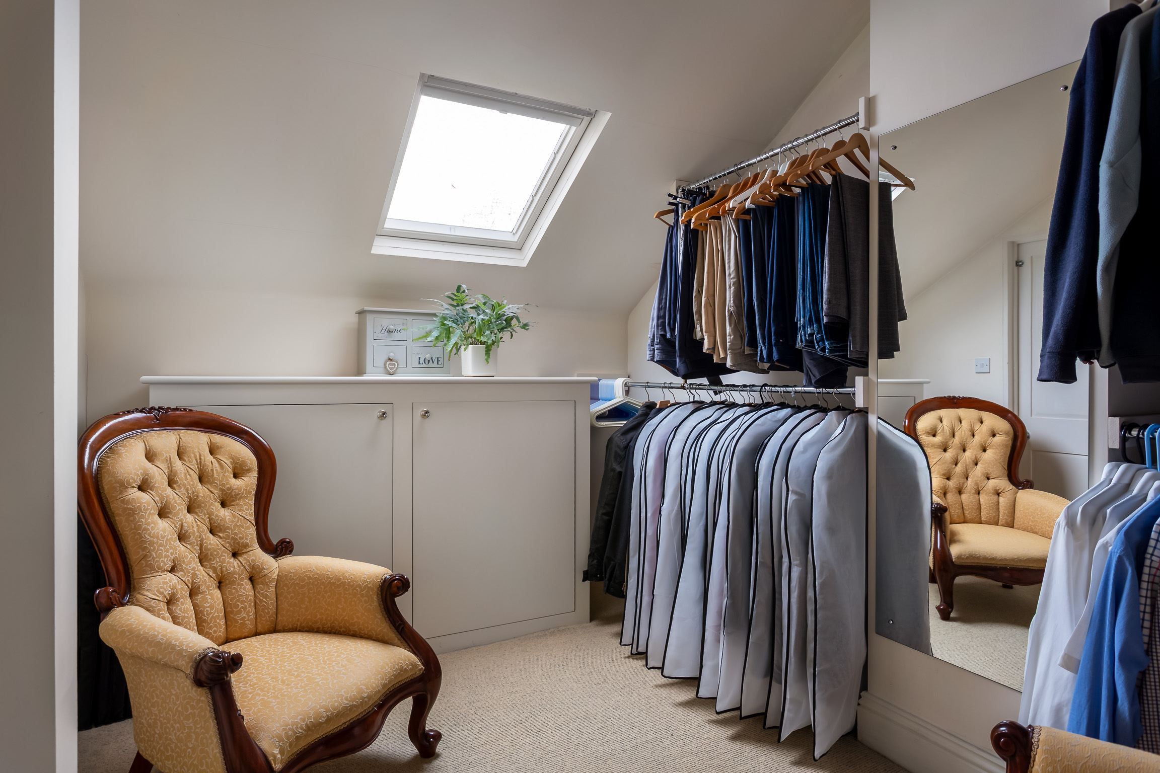 Occupying the second floor is a superb bedroom suite, featuring a walk-in dressing area. This room can also be a bedroom if required. A further bedroom and extensive storage complete the accommodation on this level, alongside a substantial family bathroom to the rear, thoughtfully designed with interconnecting doors leading to a separate shower room and W/C.