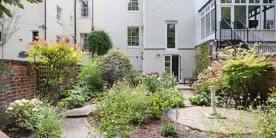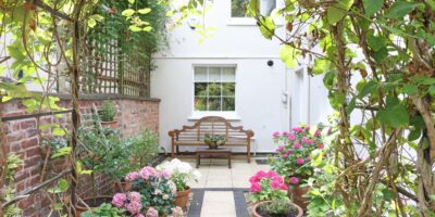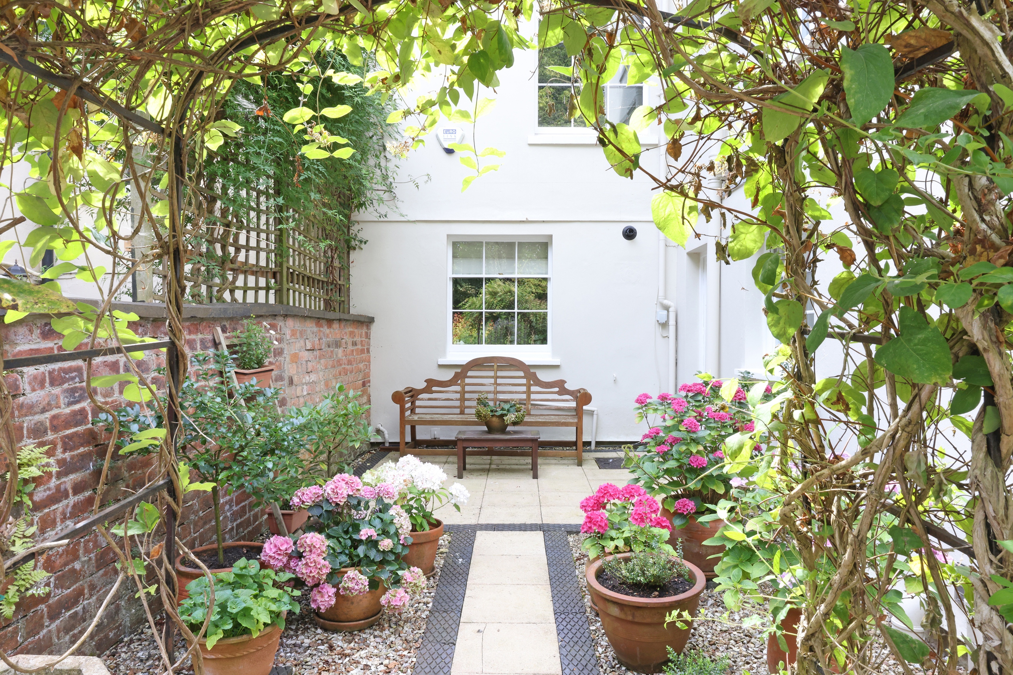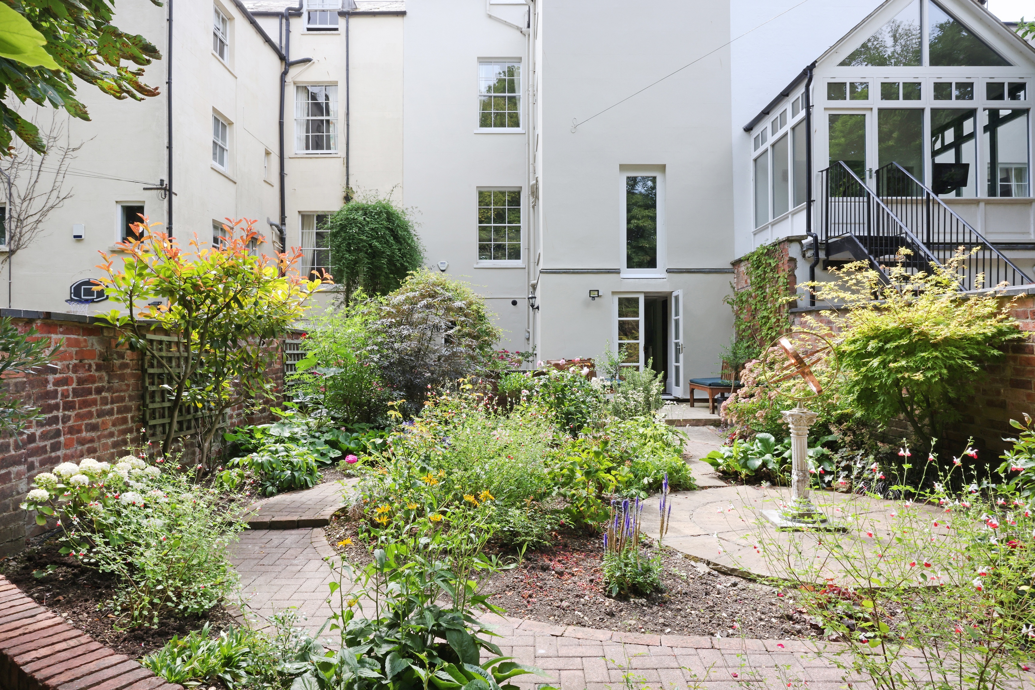 Outside, a charming walled garden unfolds to the rear, beautifully landscaped with mature planting and pretty established borders. A winding paved walkway and delightful patio areas create a serene and inviting outdoor retreat, perfectly echoing the period elegance of the house. To the front, there is parking for two cars.