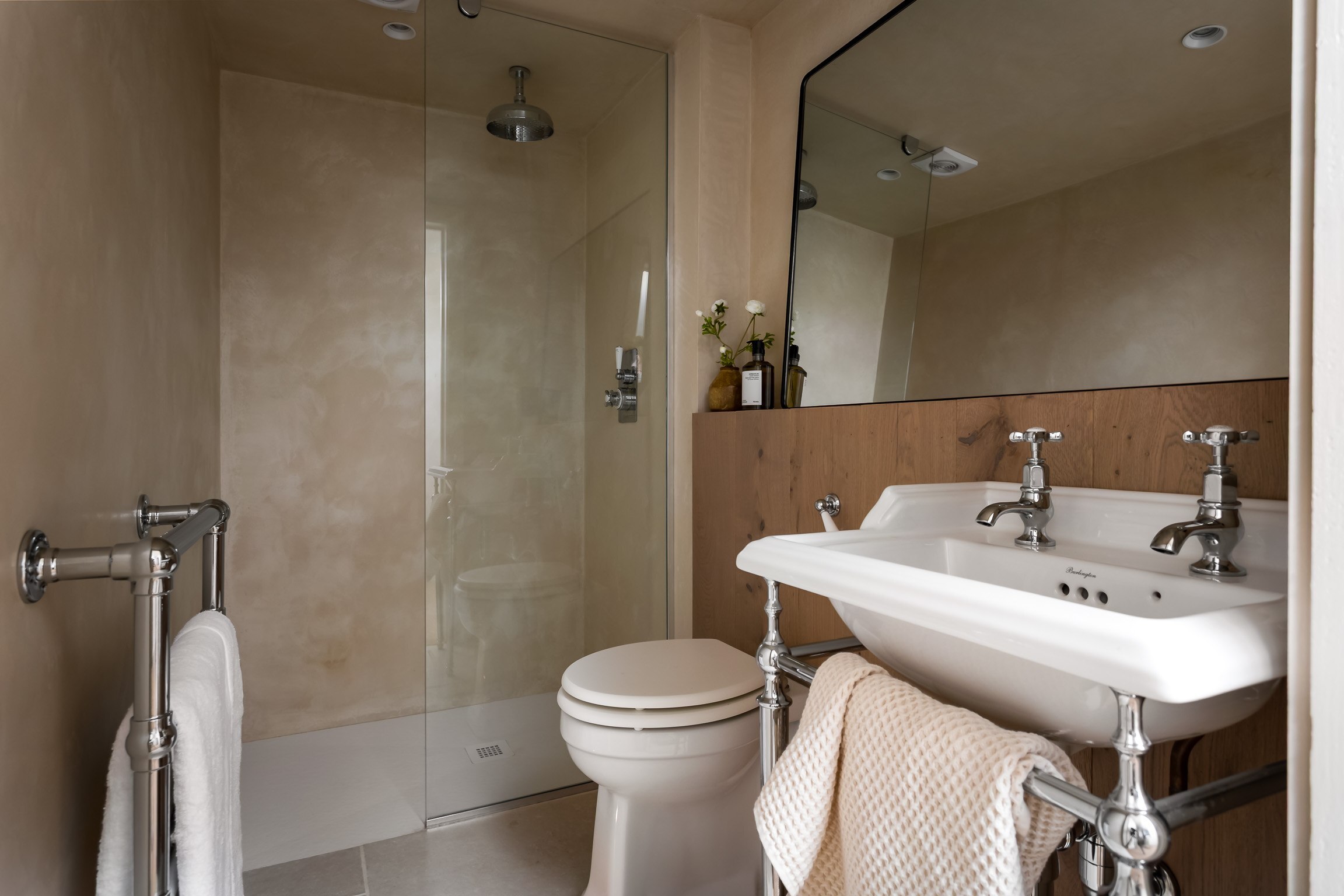 A ground-floor cloakroom with shower adds everyday practicality, particularly after muddy walks or time spent in the garden.
