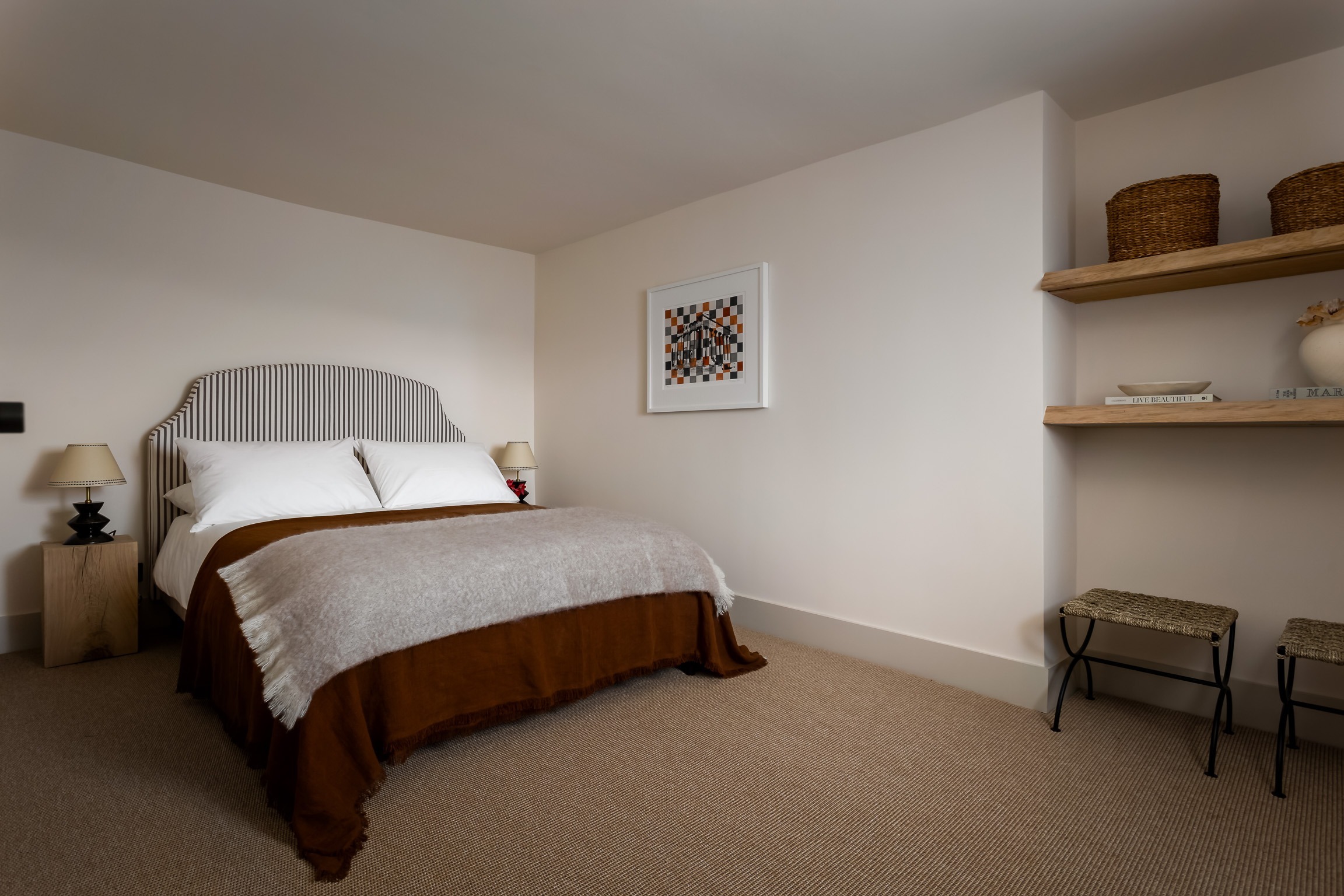 Upstairs, the house continues to feel light and restful. The principal bedroom is a calm and comfortable retreat, complete with an en-suite bathroom with underfloor heating — a lovely touch on winter mornings. There is a further bedroom on this floor, along with a family shower room, while the second floor provides two additional bedrooms filled with natural light from Velux windows.